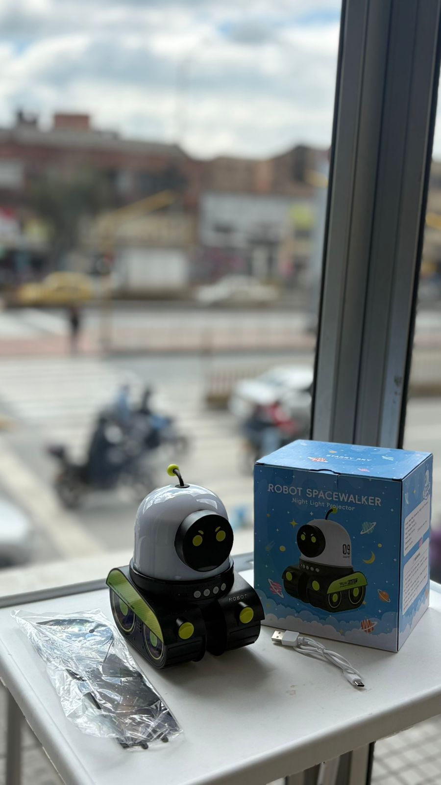 Convierte cualquier habitación en una aventura espacial con el Robot Spacewalker, un adorable proyector de luz nocturna que acompaña, decora y relaja. Su diseño futurista y tierno proyecta una luz suave ideal para crear un ambiente tranquilo antes de dormir, perfecto para niños y amantes del espacio.